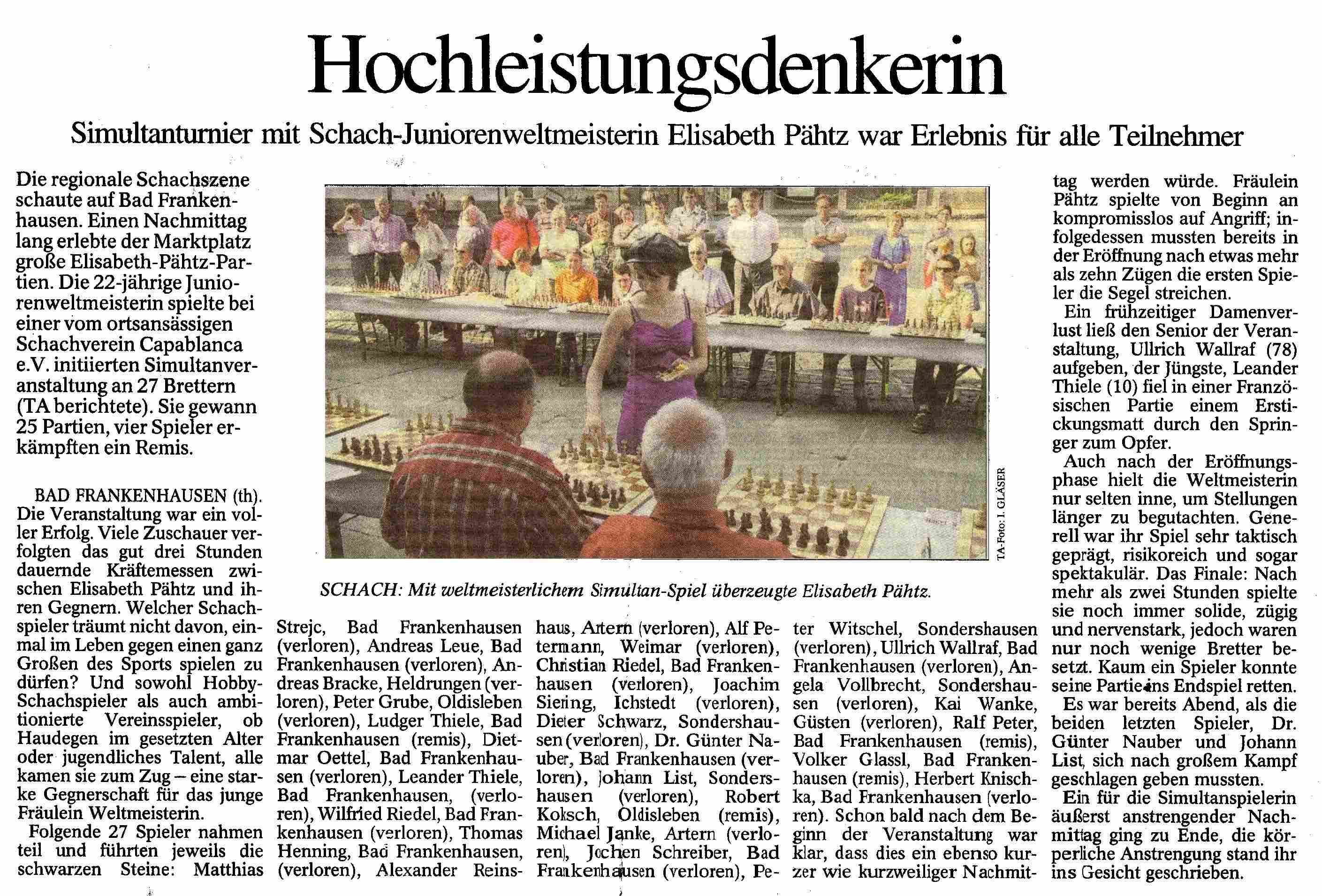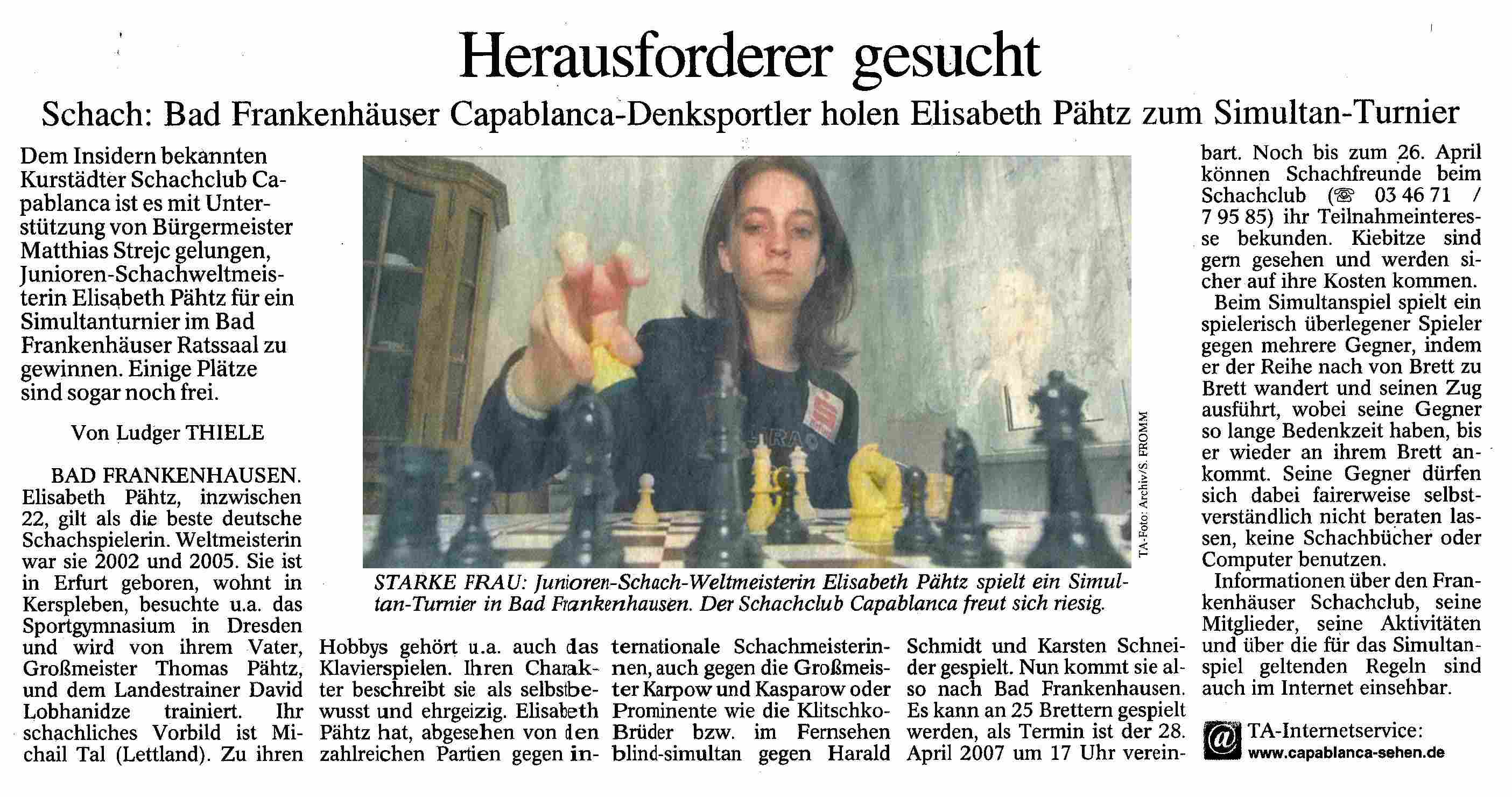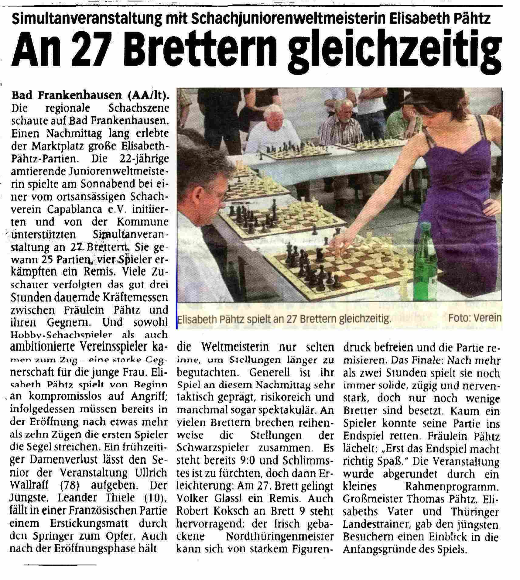 Simultanschach mit Elisabeth Pähtz am 28.April 2007 | |
