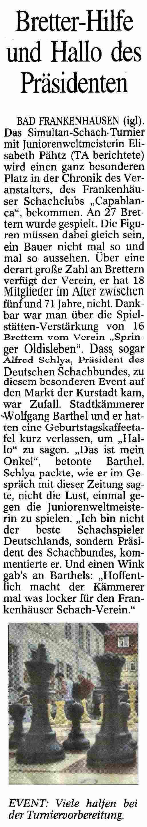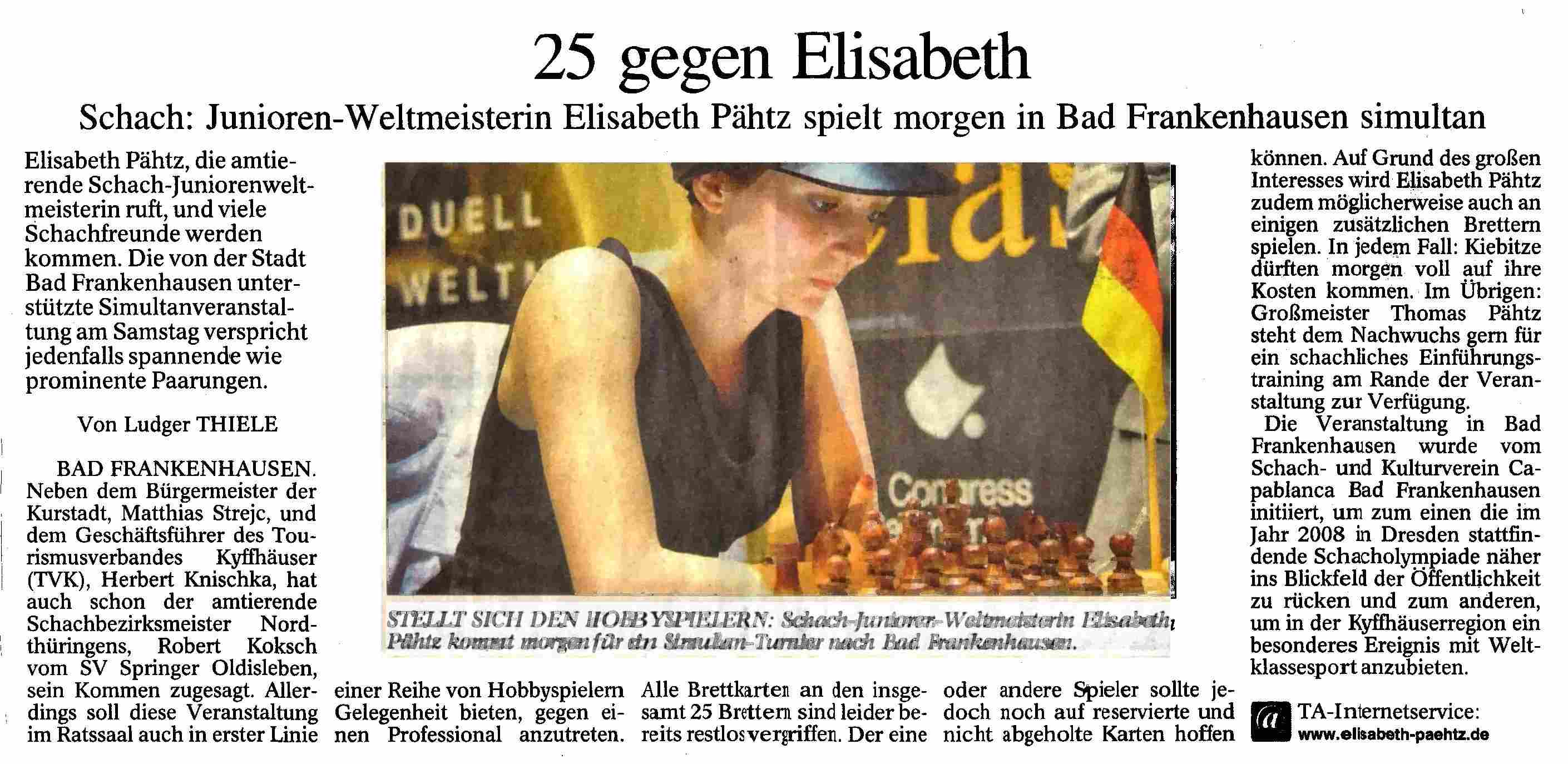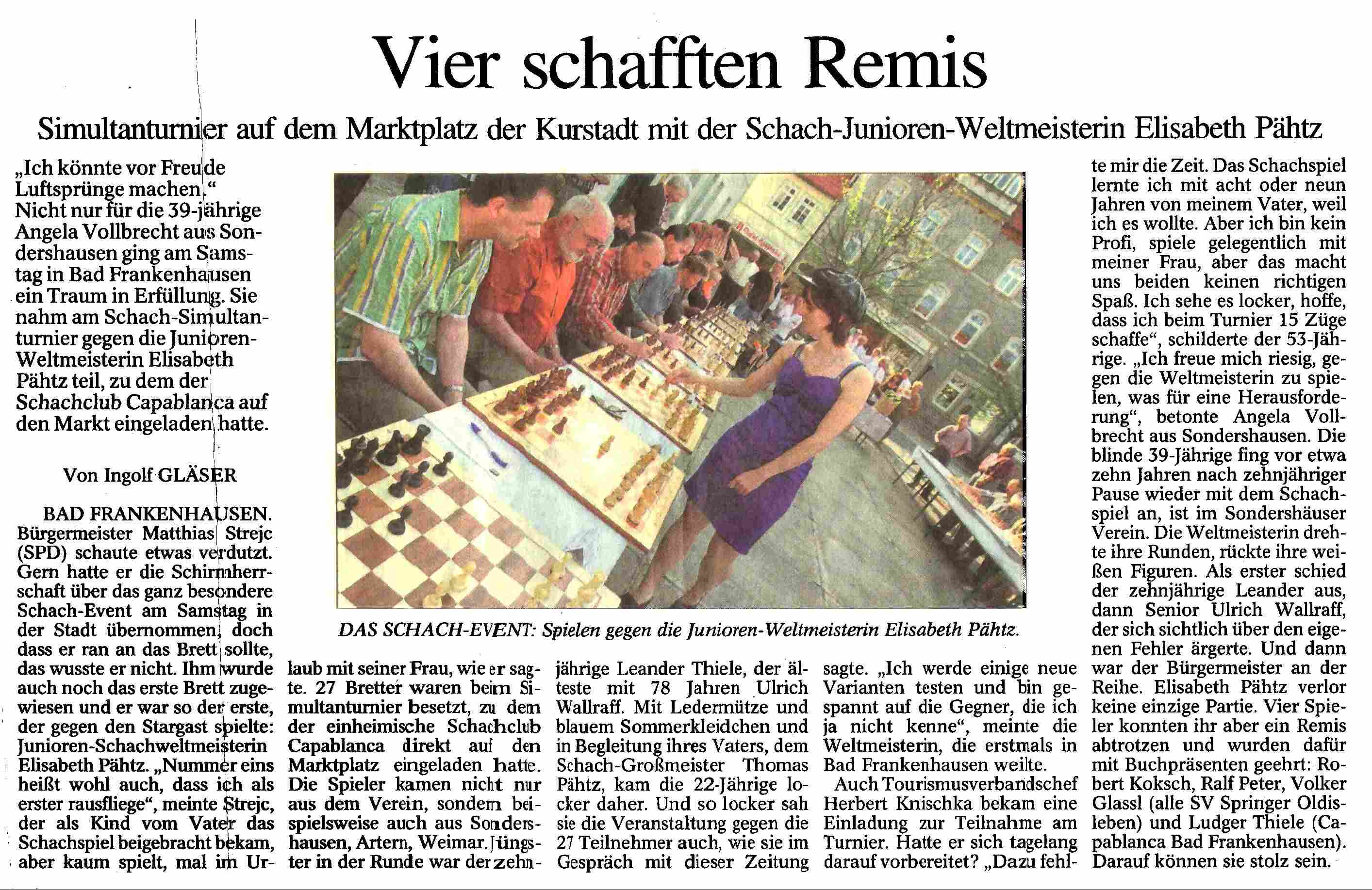 Simultanschach mit Elisabeth Pähtz am 28.April 2007 | |