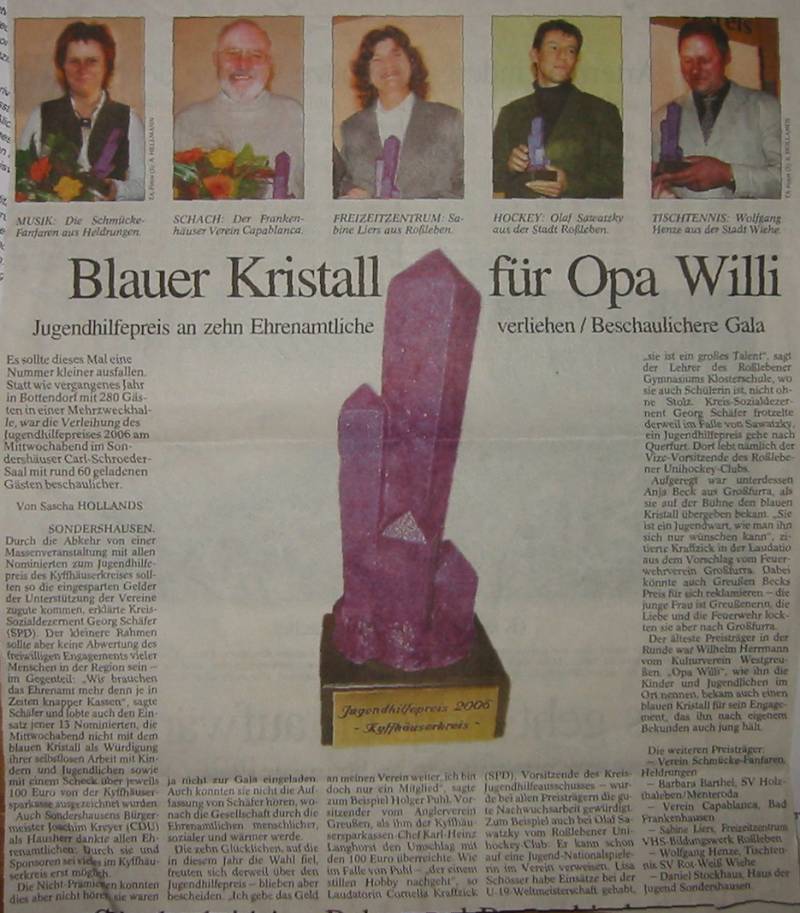 Jugendhilfepreis 2006 des Kyffhäuserkreises Artikel |