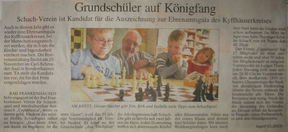 Capablanca e.V. ist Kandidat für Jugendhilfepreis 2006 des Kyffhäuserkreises Artikel | |
